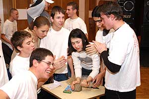 Képes beszámolónkban ugorjunk egyből a feladatok ismertetésének kellős közepébe. Az első feladatok között volt a szappanfaragás, amikor is egy állatot kellett kifaragni a kiadott BABA szappanokból. Célszerű volt katicabogarat faragni az időnként csúszós hozzávalóból, de meg lehetett próbálni a zsiráf megformálását is, csak ahhoz igen kevés volt az alapanyag.
