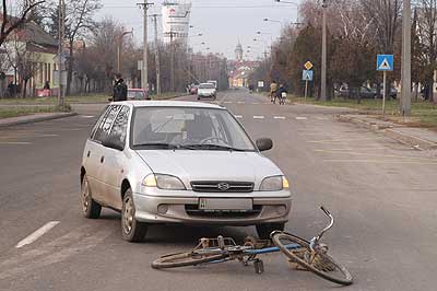 A második beleset során egy balra kanyarodó biciklis a balra kanyarodási szándékát nem jelezve hirtelen eléje kanyarodott egy Suzuki személyautónak, aki az ütközés elkerülés miatt balra rántotta a kormányt és így áttért a szemközti sávba. Szerencsére ott nem jött senki így kisebb zúzódással és leesett lánccal végződött a személyautó és bicikli találkozása. Szentes, 2004. 01. 01. |