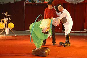 Az egyik meglepetés akkor jött, amikor a porond szőnyegét eltávolították és kész volt a műjégpálya a varietté műsorhoz. Szentes, 2003. 12. 12.