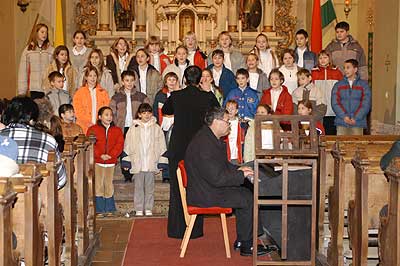 Petőfi Sándor Általános Iskola kiskórusa Dömsödi Teréz (ének) és Lakatos Béla (zongora)