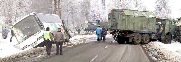 Minden viccet félretéve, szomorúan indult a lengyel K-FOR katonák útja Szarajevóba, mert 2003. február 26-án hajnali három óra körül nagyobb sebességgel vették be a volt Esze Tamás laktanyánál található kanyart és az árokba dőlt az őket szállító busz. Szerencse a szerencsétlenségben, hogy csak könnyebben sérültek meg az utazó katonák, akik közül többeket be kellett szállítani a Sürgősségi Osztályra, hogy ellássák sérüléseiket. Amíg a II. Rákóczi Ferenc Műszaki Dandár alakulata végrehajtotta a műszaki mentést, addig a laktanyában biztosítottak a bajba jutó katonáknak melegedést.