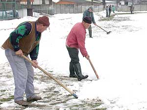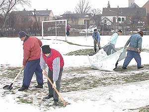 2003. március 10-én nekiláttak a hétvégi bajnoki startra készülve a városi futballpályának a hótól való megtisztításához.