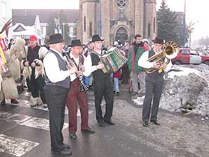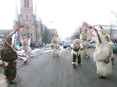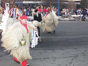 Mivel a kút még a hó fogságában volt, így az úttesten járták a télűző táncukat a busók.
