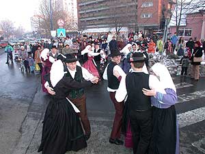 Egy gyors útlezárás után jöttek a télűző táncok.