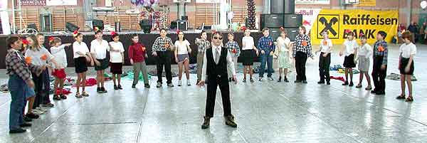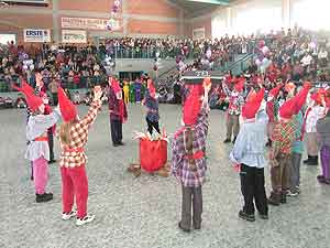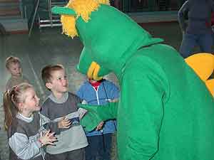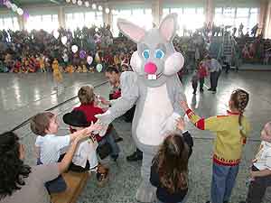 Az iskolai csoportok fellépésének szünetében Nyuszi és Süsüke üdvözölte a gyerekeket.