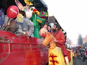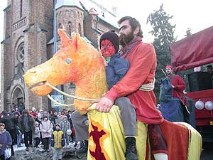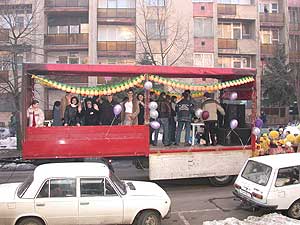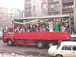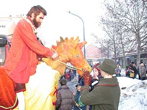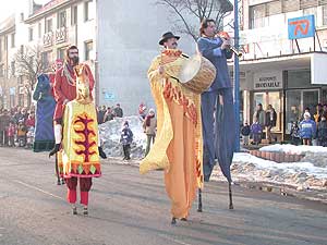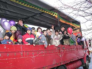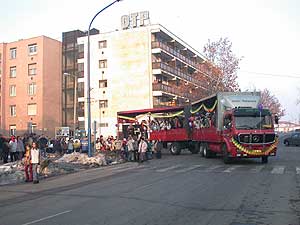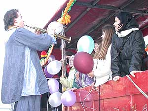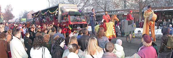 Amikor a karaván rákanyarodott a Kossuth utcára, a kamion útját állták a "Langaléta Garabonciások"!