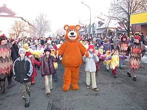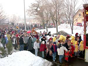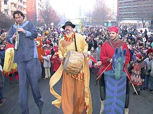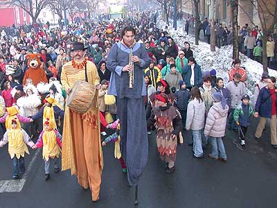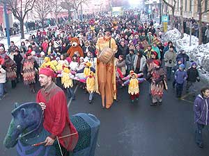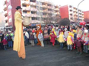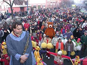 A Sportcsarnoktól először a karneválozó tömeg a Klauzál utcára vonult.