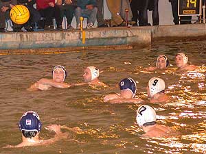 A férfi vízilabda OB 19. fordulójában 2003. március 15-én Csongrád megyei rangadót rendeztek Szentesen. A várt nagy csata elmaradt, ugyanis a Szeged Beton VE (kék) végig remekül játszva, fölényes győzelmet aratott a Kontavill ellen.