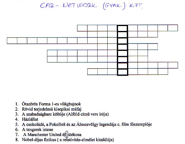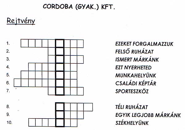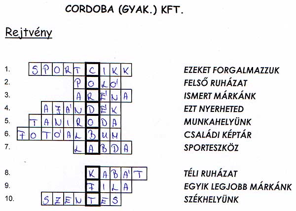 STONE-PHONE (gyak.) KFT. rejtvénye CORDOBA (gyak.) KFT. rejtvénye és annak megfejtése VÁR-LAK (gyak.) KFT. rejtvénye és annak megfejtése CAR-NETWORK (gyak.) KFT. rejtvénye és annak megfejtése Szentes, 2003. 03. 17.