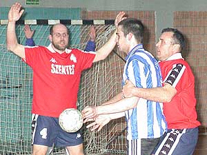 A Szentesi Kinizsi 2003. március 16-án fogadta a Szentesi Városi Sportcsarnokban az Universitas SE kézilabda csapatát. A fej-fej mellet, és test-test ellen folyó mérkőzés a félidőben 13:13 volt. Fordulatos csatában, és a rendes játékrészben nem sikerült eldönteni a mérkőzést (26:26), de az utolsó szentesi megmozdulást szabályosnak, a vendégek védekezését pedig szabálytalannak látta a bíró és így a döntés a szentesiek kezébe került az időntúli hétméteressel.