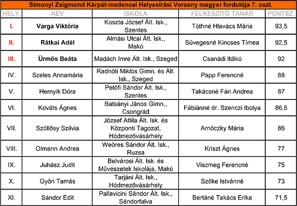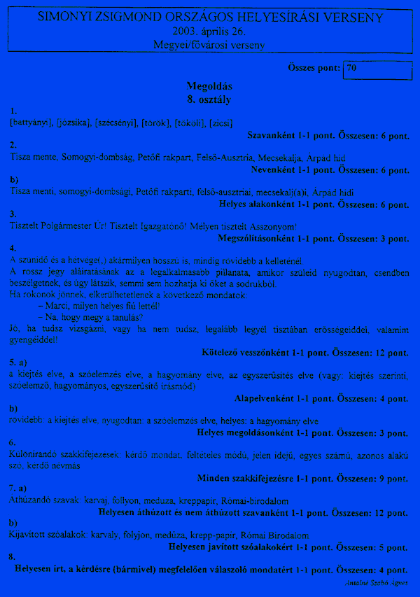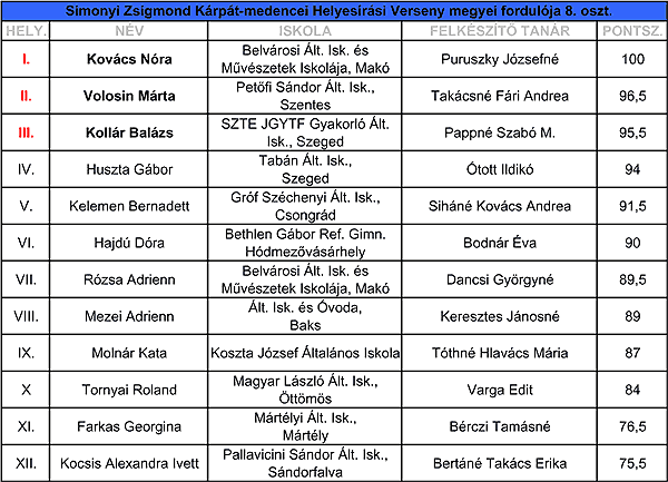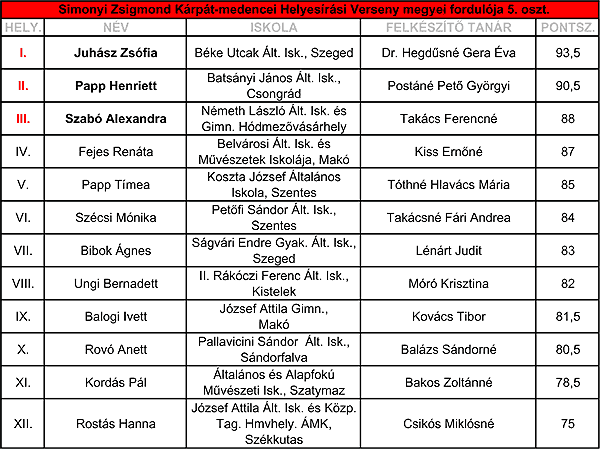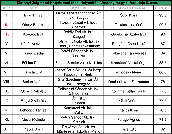 Lássuk az eredményeket és a feladatlapokat és azok megoldását: