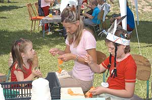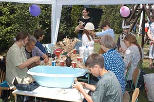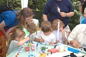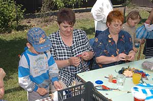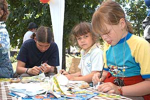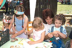 Amíg a nagyobbak kenu csatát vívtak, addig a kisebbek rajzoltak, festettek, fontak, csomóztak.
