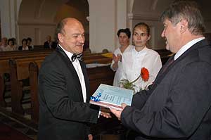Zárszót SZIRBIK IMRE Szentes város polgármestere mondta, és emléklappal köszönte meg az énekkarok részvételét, melyet a karnagyok vehettek át.