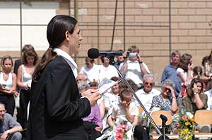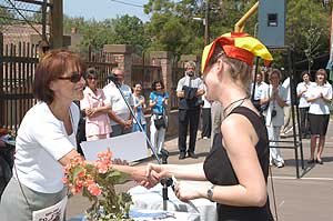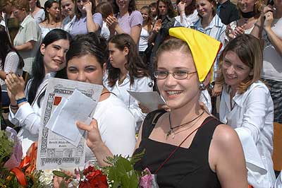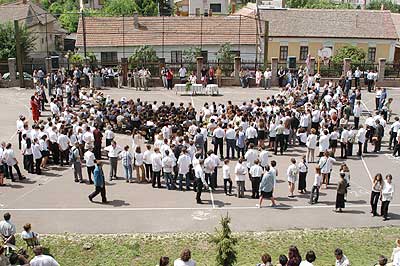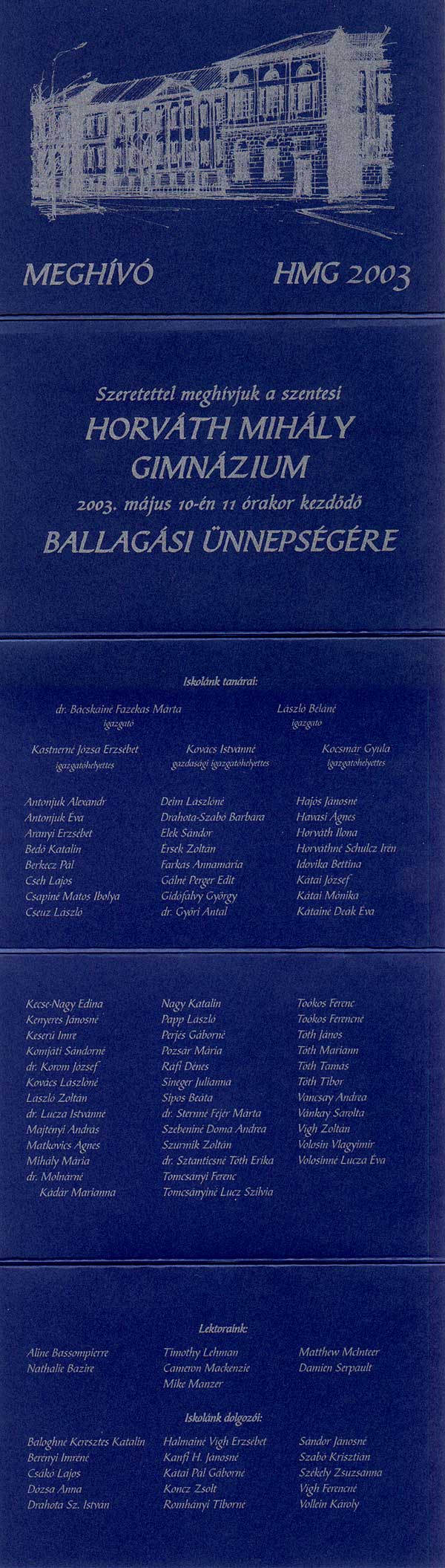 Horváth Mihály Gimnáziumban 2003. május 10-én 11 órakor kezdődött a végzős diákok ballagási ünnepsége. Sajnos a diákok már jóval ez idő előtt elkezdték a folyosókon való végigvonulást és mire odaértünk a jelzett időpontra már mindenki az udvaron volt.