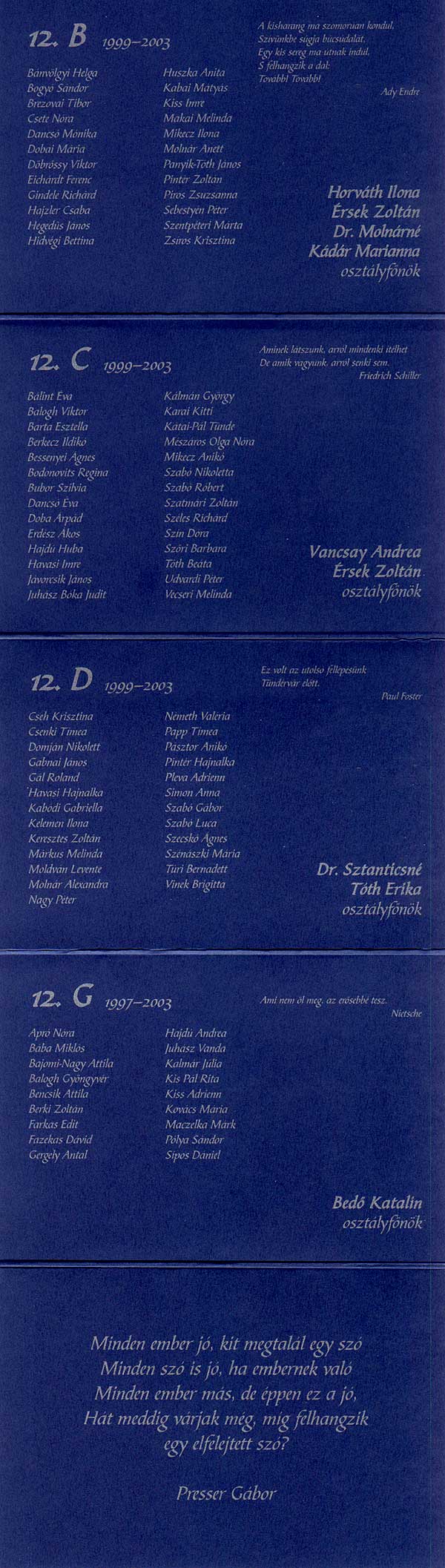 Az iskola osztályainak tablói A tablókra kattintva kinagyíthatók!