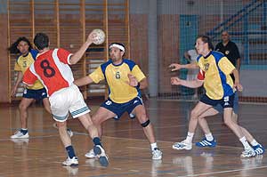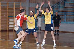 Nem sikerült a Szentesi Kinizsi férfi kézilabda csapatának visszavágni a Domaszéken elszenvedett vereségért 2003. május 11-én a Városi Sportcsarnokban. A megye I-es férfi kézilabda-bajnokság rájátszásában az NB II-es feljutásért küzdő szentesiek Domaszék csapatát fogadták, hogy visszavágjanak hazai körülmények között, de a félidei fordulóig nem tudtak dönteni az elsőségről (15:15). A második félidőben egy szélről kapura lőtt labda Herold Péter kapust arcon találta és rövid pihenőre szorult, mert eleredt az orra vére. A vendégek átlövője egyenlőre "tisztázatlan körülmények" miatt kapott az orrához és neki is eleredt az orra vére. Sajnos a folyamatos támadásbeli fegyelmezetlenség miatt (ellőtt labdák, rossz passzok, elkapkodott támadás) nem tudták a szentesi legények itthon tartani a pontokat és a mérkőzés végeredménye 25:29 Domaszék javára.