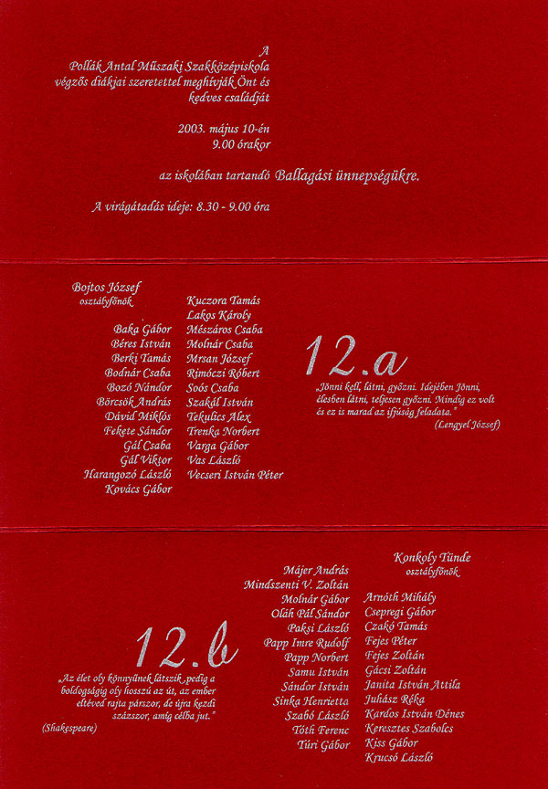 Az iskola ballagási meghívója