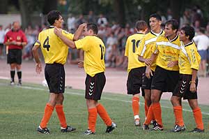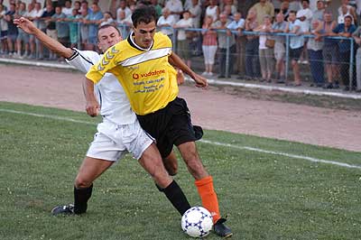 Sajnos a második félidőben kissé túlzott bírói döntések után az orosháziaktól két a szentesiektől egy játékos hagyta el a pályát piros lap miatt. Az utolsó öt percben sikerült azért megmenteni legalább egy pontot, mert a kapus lába között Szabó Tibor gurította be a szentesiek egyenlítő gólját. Szentes, 2003. 08. 12. |