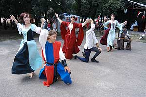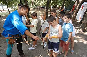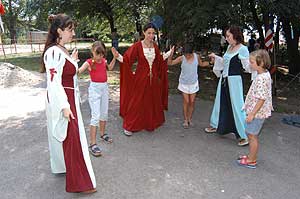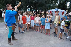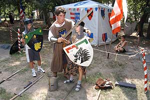 Élő történelmi táborba várták (Zenthus János Hagyományőrző Egyesület tagjai és a Családsegítő Központ) azokat a lelkes gyermekeket és fiatalokat, akik szeretnék megtapasztalni, hogy milyen is lehetett az apródi, fegyvernöki szolgálat, az udvarhölgyek élete Károly Róbert uralkodása idején és Mátyás király udvarában.