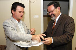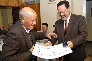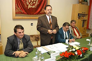 A tanácskozás és beszámolók után az Ipartestület elnöksége a "25 éves kisipari- vállalkozói munkájának elismeréséül" és az Ipartestület közösségéért végzett tevékenységéért ezüstgyűrűt és emléklapot adományozott Berényi Sándor kútásónak, Berekméry Sándor tv-szerelőnek, Seres István szobafestőnek és a fábiánsebestyéni Valkai Ferenc kőművesnek. Szentes, 2003. 09. 30. |