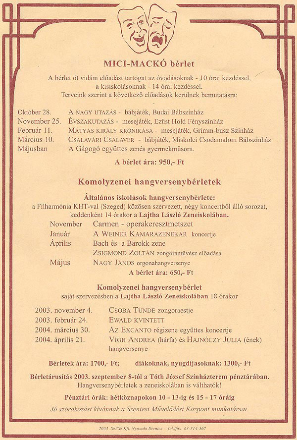 a Filharmónia KHT-val (Szeged) közösen szervezett,