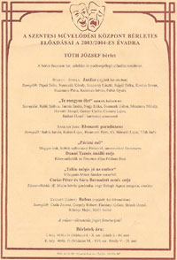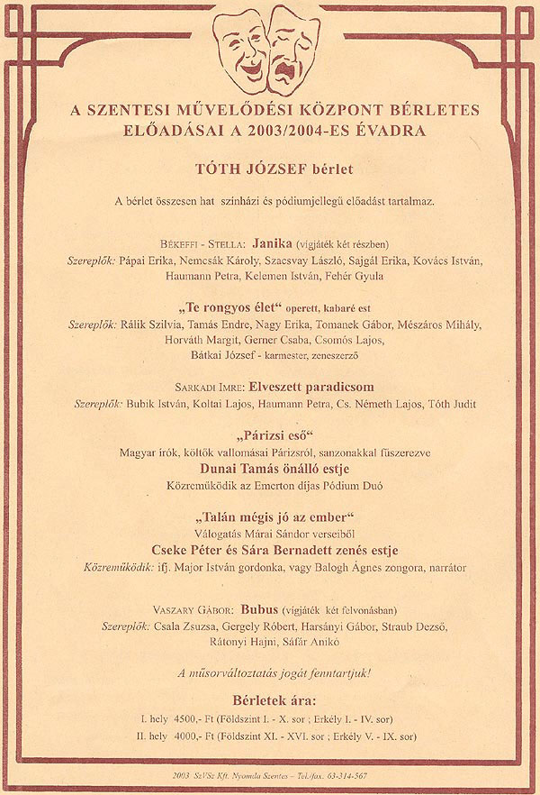 Bérletek ára: I. hely 4500,- Ft (Földszint I. -