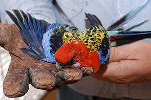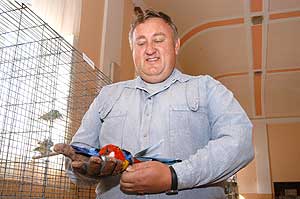 A papagájok és egyéb díszmadarakban csak gyönyörködhettek a látogatók, mert a szakavatott tenyésztői kezet sem kímélték a megriadt madarak, és még a bőrkesztyűt is átcsípték.