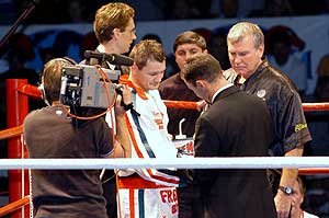 BOXGÁLA - 2003. szeptember 6. Szeptember 6-án este 11 óra után öt felcsendülő muzsika jelezte, hogy eljött a WBO félnehézsúlyú interkontinentális övéért zajló főmérkőzés ideje.