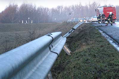 A szombati (2004. jan. 17.) esős nap után mindenki várta a vasárnapot, mert ugyan hideget emlegetett Aigner Szilárd, de megígérte, hogy az eső nem fog esni. Vasárnap reggeli 6 órakor még plusz 2 fokot mutattak a hőmérők, de fél óra elteltével fagypont alá süllyedt a reggeli "meleg"! Ennek az időjárási viszontagságnak lett az áldozata az a Ford Transit kisáruszállító, amely "megrongyolta" a Szentes-Csongrád közötti 451-es főút szalagkorlátját, az úton található Tisza-híd közelében.