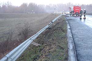 Szerencsére a korlát megfogta az autót és nem engedte az ártérbe zuhanni és így nem szaporodott a tragédiák és a korláton található koszorúk száma. Szentes, 2004. 01. 18. |