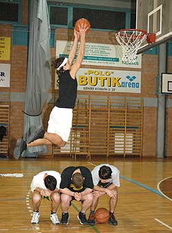 - Kik voltak ez ellenfeleid? - A profi döntőnek öt résztvevője volt. Négy amerikai profi kosárlabdázó és jómagam. Csak úgy zárójelben jegyezném meg, hogy négyük közül hárman 2 méter feletti testmagassággal rendelkeztek, és igazán törpének tűntem mellettük a magam 186 centiméterével.