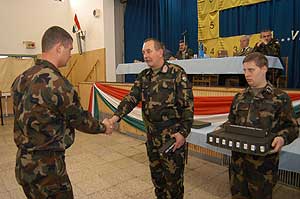Kovács István dandártábornok nyújtottá át a leszerelő katonáknak a minisztérium által biztosított ajándékot.