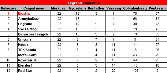 LEGRAND VÁNDORKUPA Ideiglenesen gazdára talált! Több éves kihagyás után 2004-ben újból beindult a Legrand sporttelepén a városi, kispályás labdarúgó bajnokság.