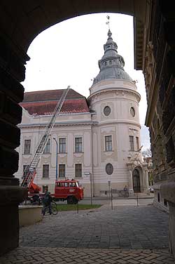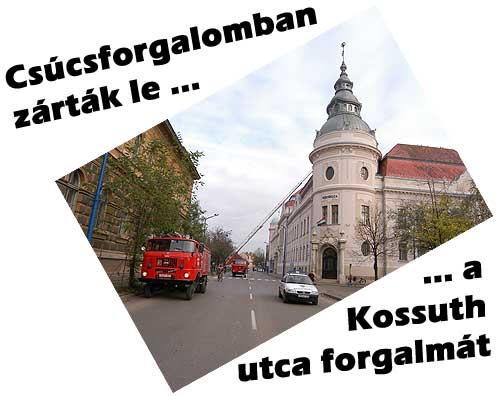 2004. november 17-én 14 óra előtt pár perccel teljes szélességében lezárta a rendőrség a Városháza előtti útszakaszt. Az útlezárást keresztbe fordult szirénázó rendőrautókkal tették, ami következtében az arra közlekedők egyből balesetre és helyszínelésre gondoltak. Persze mindez nem ezért történt, de a fiatalok egymást túllicitálva találgattak. Hallottunk olyan hírt is, hogy a tetőtérbe Alkaida fegyveresek bújtak meg, és ezt még tovább is ragozták a fantáziával megáldott gyerekek. Ennél azért egyszerűbb az ok. Az elmúlt napok időjárása egy-két palát meglazított a Városháza tetején és ezt a tűzoltók újra rögzítették. Hogy ezt a munkát zavartalanul és gyorsan el tudják végezni ezért kb. 30 percre lezárták a gyalogos és a járműforgalmat ezen a területen.