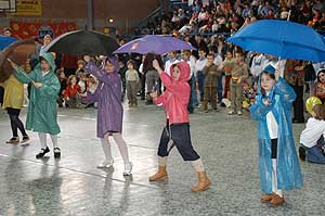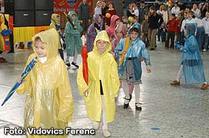 A Koszta József Általános Iskola 3.c osztály esernyőiből is kiderült, hogy felkészültek az esős időjárásra, de addig is énekeltek az "esőben".