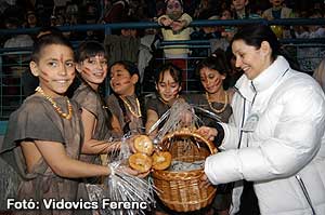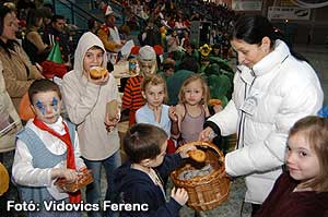 Amíg folytak a bemutatók, szorgos kezek a Központi Konyhán sütötték a friss farsangi fánkot. A nézők körében igen kelendő volt a porcukros fánk, amiből több, mint 1500-at osztogattak szét. (Azért volt csak porcukros, mert az elmúlt évben több ruhadarab is áldozatául vált a lekváros fánknak gyermeki ügyetlenség miatt, de a rutinosak hoztak magukkal baracklekvárt!)