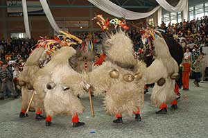A verseny végén újra jöttek a szlovén táncosok és a busók, akik nemcsak a telet, hanem a közönséget is kiűzték a Sportcsarnokból, mert jött az utcai felvonulás.