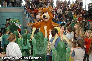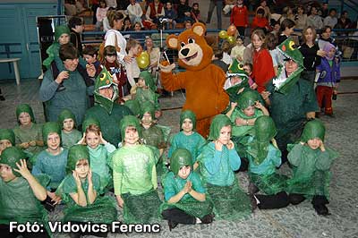 A busó tánc végén Süsü, Nyuszika és Maci játszott a gyerekekkel, amíg el nem kezdődött a felsőbb évesek jelmezversenye.