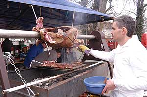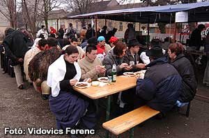 A Sportcsarnok melletti területen gasztronómiai udvart rendeztek be, ahol a népi jellegzetes, csipetkés gulyástól malacsültig lehetett mindent kapni.