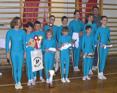 A lovastornász lányok és fiúk az egyéni kezdő kategóriákban is nagyon szép eredményeket értek el. K1 kategóriában: 1.Hankó Rebeka 5.278 ponttal, 2.Tóth István 4.985 p., 4.Horváth Roland 4.574 pont. K2 kategóriában: 2.Sebestyén Ágnes 4.96 ponttal, 3.Hankó Emánuel 4.717 p., 4.Dajka Dalma 4.673 p., 9.Nikov Daniella 3.946 p., 13.Horváth Kamilla 3.721 pont. Az eredményeikhez gratulálunk és további sikeres felkészülést kívánunk a következő versenyekhez és a tanuláshoz egyaránt! Dittrich Petrának, aki sérülés miatt ezen a versenyen nem vehetett részt, mielőbbi gyógyulást! (Fotó és szöveg: Dajka István) Szentes, 2004. 02. 22.