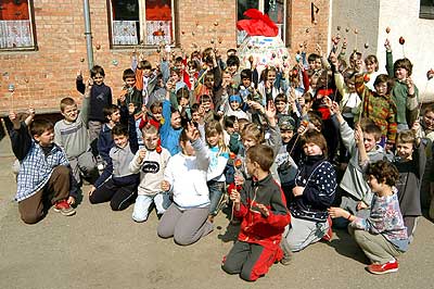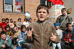 A Damjanich János Általános Iskolában a húsvéthoz közeledve már évről évre hatalmas tojást készítenek és festenek a tanulók. Az udvaron felállított hímes tojást az ünnephez kapcsolódó gyermekrajzokkal díszítették a gyerekek. Ezen a délelőttön márványfestésű tojásokat is készítettek, és újabb locsolóverseket tanultak.