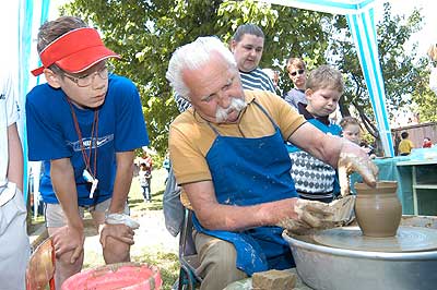 A kézműves sátorban igazi újdonság volt a korongozás, ahol mindenki az élményen kívül összeszedett egy kis agyagfoltot, és ha szerencséje volt akkor az a kötényre került.