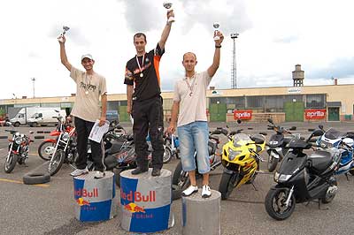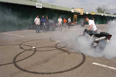 A verseny szünetében volt olyan motoros, aki az Olimpia jegyében gumival rajzolta ki az olimpiai öt karikát. Akik ismerik a gumiárakat, azok jól tudják, hogy ezek a karikák darabonként közel 10000 ft-ba kerülnek, mert a végén már csak a vásznon "ballagott" haza a motor tulajdonosa, mert gumi az nem maradt a keréken.