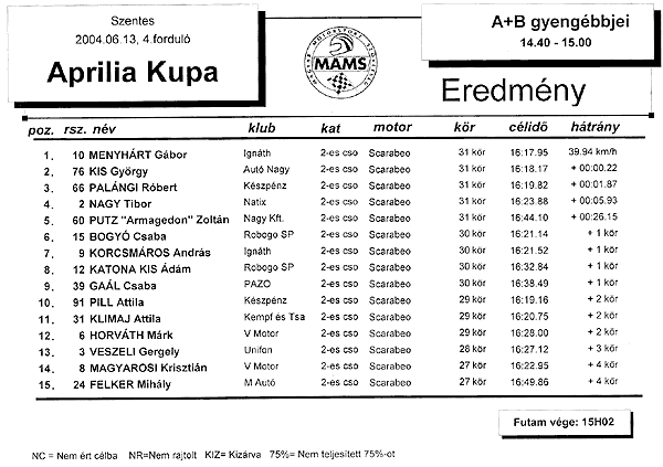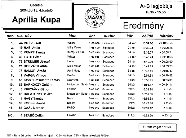 2004. június 13-án Szentesre érkezett az aprilia ROAD - SHOW, amely keretében városunkban először láthattunk robogóversenyt az Árpád Nagybani Piacon.