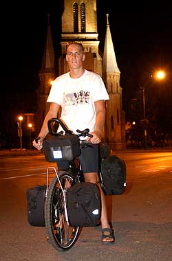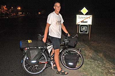 Baranyi Antal a Four Diamonds sportegyesület és az Api Kerékpár Centrum (Hódmezővásárhely) támogatásával, valamint Zsemberi János bútorasztalos, Vida-Szűcs Kft., Capri Büfé, Varga Lajos gyógymasszőr, Joker Kerékpár Szaküzlet, Csendes Zoltán, Nagy Henrik segítségével vághat neki a nagy útnak. Szentes, 2004. 07. 28. |