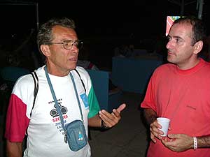 A fiatalember az interneten keresztül folyamatosan követte a tanár úr athéni útját, és amikor sikerült a fenti képeket elkészíteni elhatározta, hogy rendelkezésünkre bocsátja azokat. A képeken Szabolcs és Zsolt beszélget Cseuz Lászlóval, és a brazil - magyar női kézilabda mérkőzésen sikerült a tanár urat lefényképezniük a szurkolótáborban. Szentes, 2004. 09. 03. |