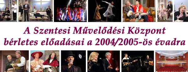 Bérletárusítás 2004. szeptember 6-tól a Tóth József Színházterem pénztárában. Hangversenybérletek a zeneiskolában is válthatók! Pénztári órák: hétköznapokon 10-13-ig és 15-17 óráig Szentes, 2004. 09. 09.