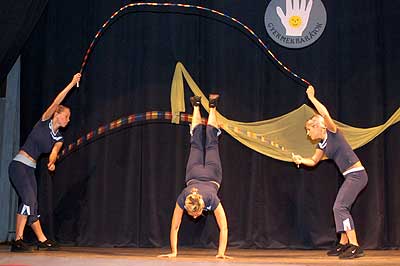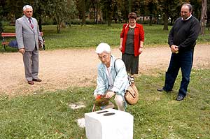 A színházi műsor végén (az elismerések átadása után) megkoszorúzták a ligetben található 2001-ben felállított a világ tragikus sorsú gyermekeinek emlékező emlékkövet. Sajnos ezen a napon olyan eseményre is szomorúan gondoltak vissza a résztvevők, amely napokkal ezelőtt történt, ahol is közel 200 gyermek veszítette életét egy értelmetlen túszejtés következtében. (Beszlan). Szentes, 2004. 09. 28. |