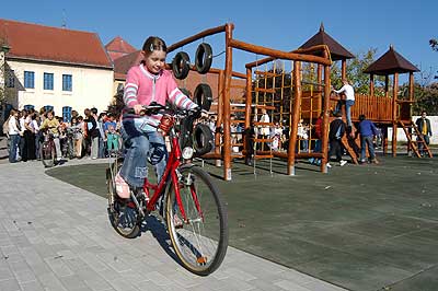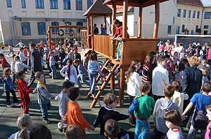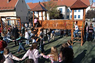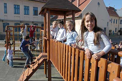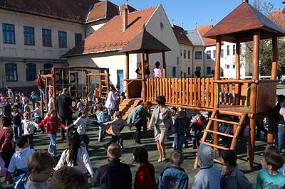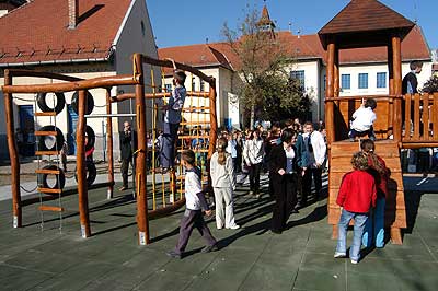 Az elmúlt hetekben már hírül adtuk, hogy a Szent Erzsébet Katolikus Általános Iskolában az utolsó simításokat végzik az iskola udvarán épített játszóváron, és a hozzá tartozó téren.