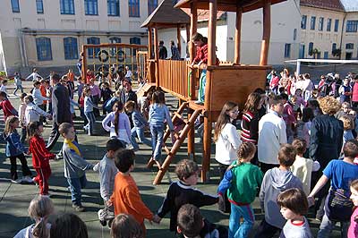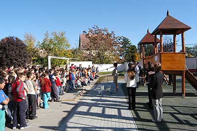 2005. október 28-án jött el annak az ideje, hogy a gyerekek birtokba vegyék a "Boldogkő" névre keresztelt játszóvárat. Az avató beszéd megírását és a nemzeti színű szalag átvágását is diákok végezték el, mert ez alkalomból avatóbeszéd írására írt ki pályázatot az iskola. Természetesen a legjobb beszédíró nyereménye az volt, hogy az iskolai játszótéravatás során felolvashatta azt. Ez a megtisztelő feladat Kiss Dávidnak jutott. A játszótér avatása (a nemzeti színű szalag átvágása) Kóczán Balázs 8.c osztályos tanulóra várt, akit a diáktársak szavazatai alapján jelöltek erre a posztra.